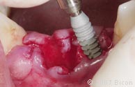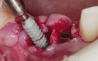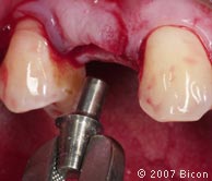 用装在直柄上的种植体插入器将一个4.5mm x 8.0mmHA涂层的种植体植入种植窝。 |