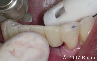 固定桥表面涂布分离剂以便于除去多余的粘结剂。 |