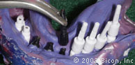 15. | 在直径为3.0mm的印模柱上安放相应的白色种植体代型。 |