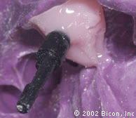 14. | 将黑色的2.0mm印模柱插入种植体内径。 |