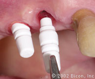 20. | 在第二颗种植体内径上戴入Bicon基台冠。 |